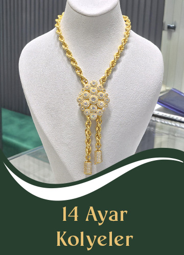 5.50 GRAM 14 HALAT ZİNCİRLİ 8 AD. ÇEYREKLİ ORTASI YARIMLI KOLYE