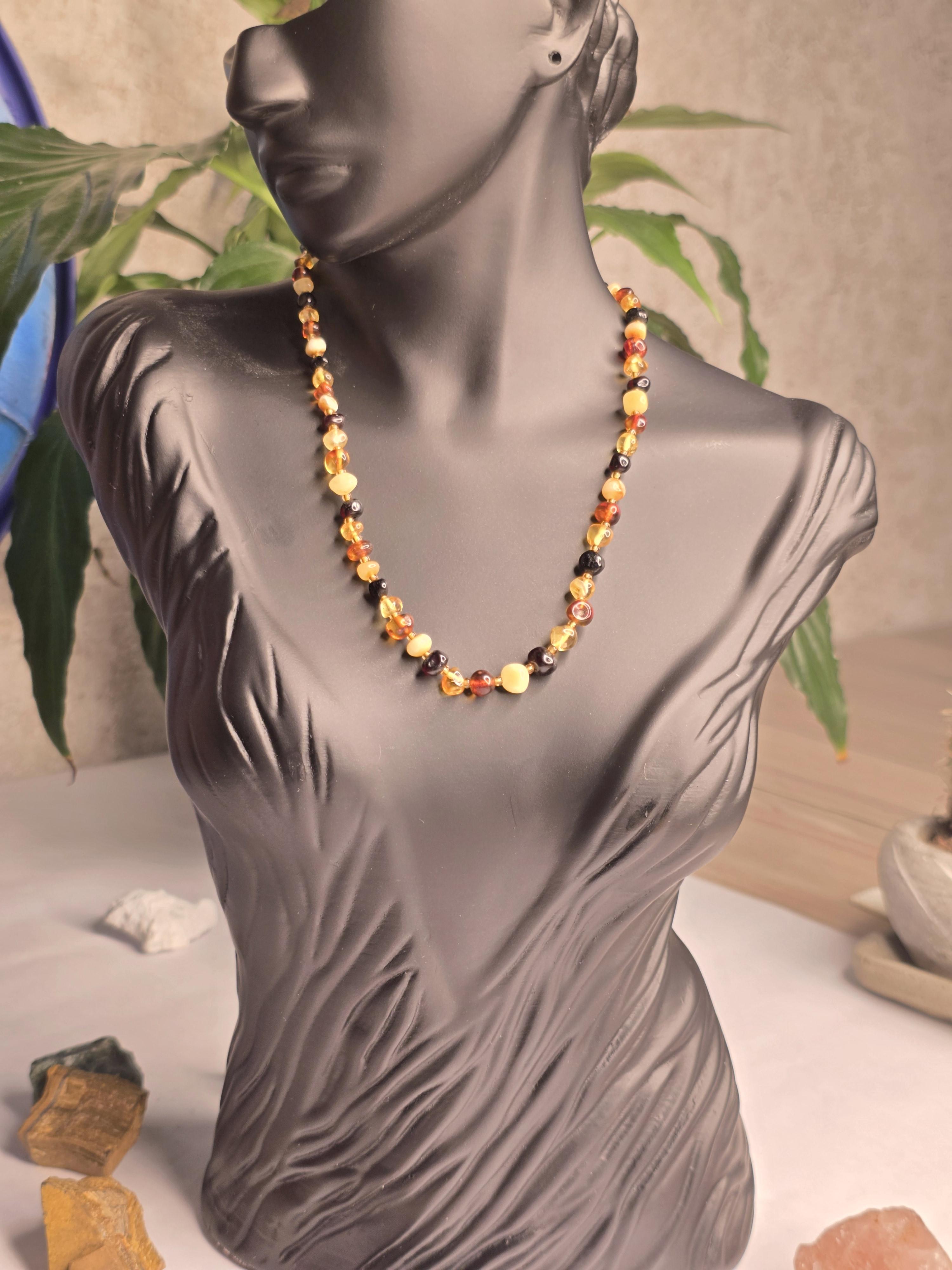 Doğal kehribar kolyenizin uzun ömürlü olabilmesi için dikkatli bir şekilde bakım yapmanız önemlidir. Aşırı nemden, doğrudan güneş ışığından ve kimyasallardan uzak tutmalısınız. Yumuşak bir bezle silerek temizleyebilir, suya maruz bırakmamaya özen göstermelisiniz.