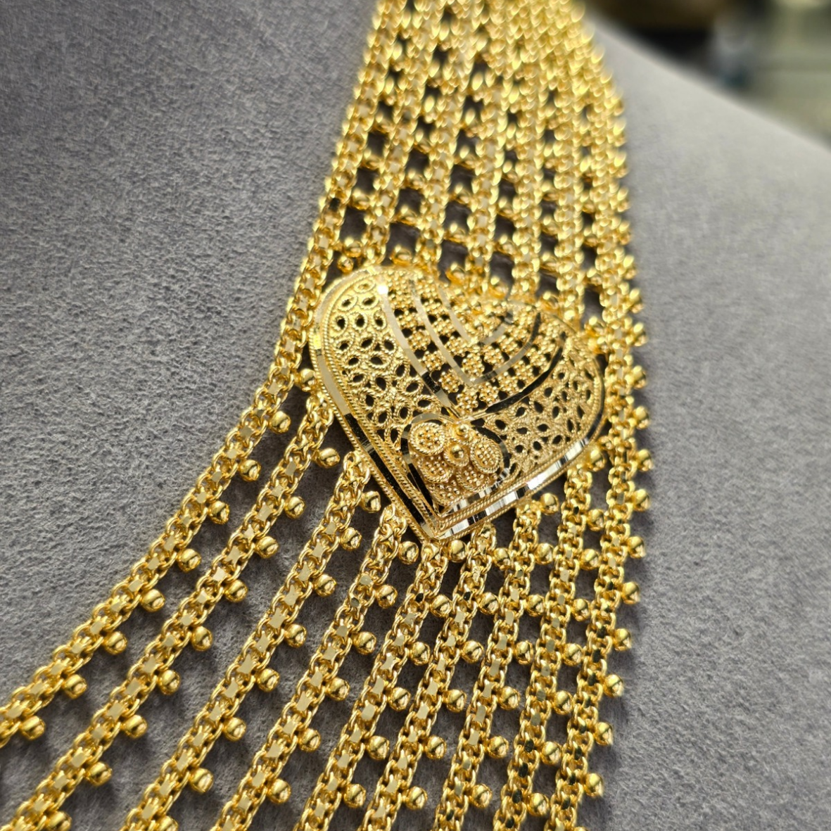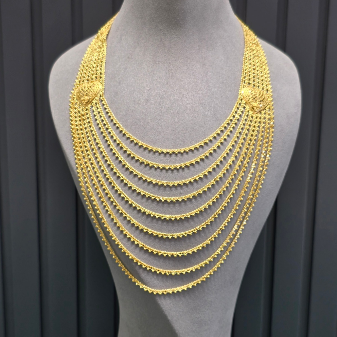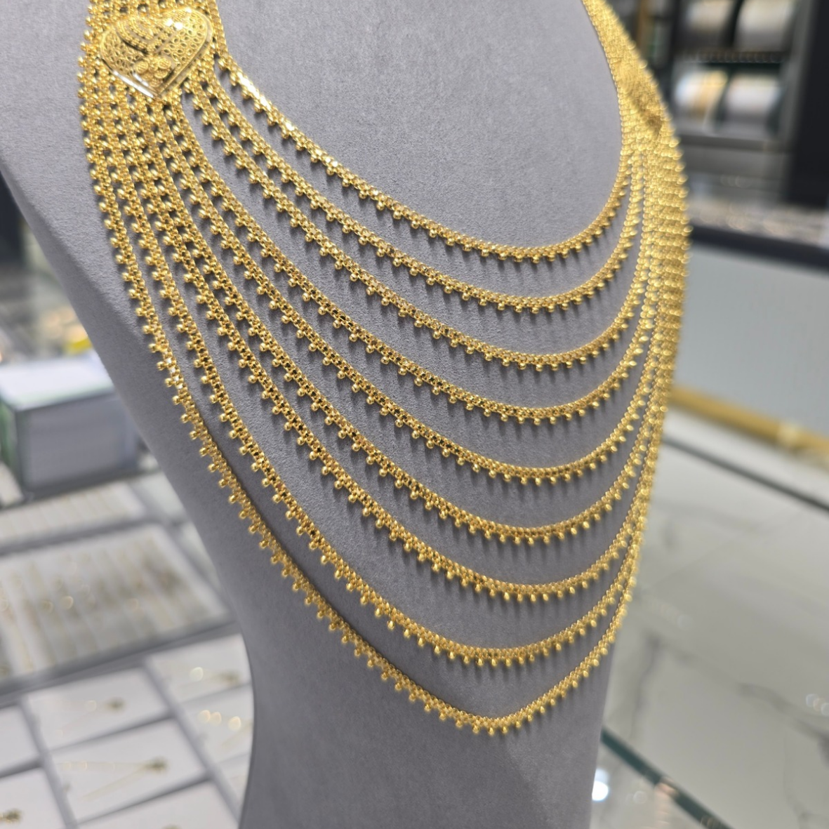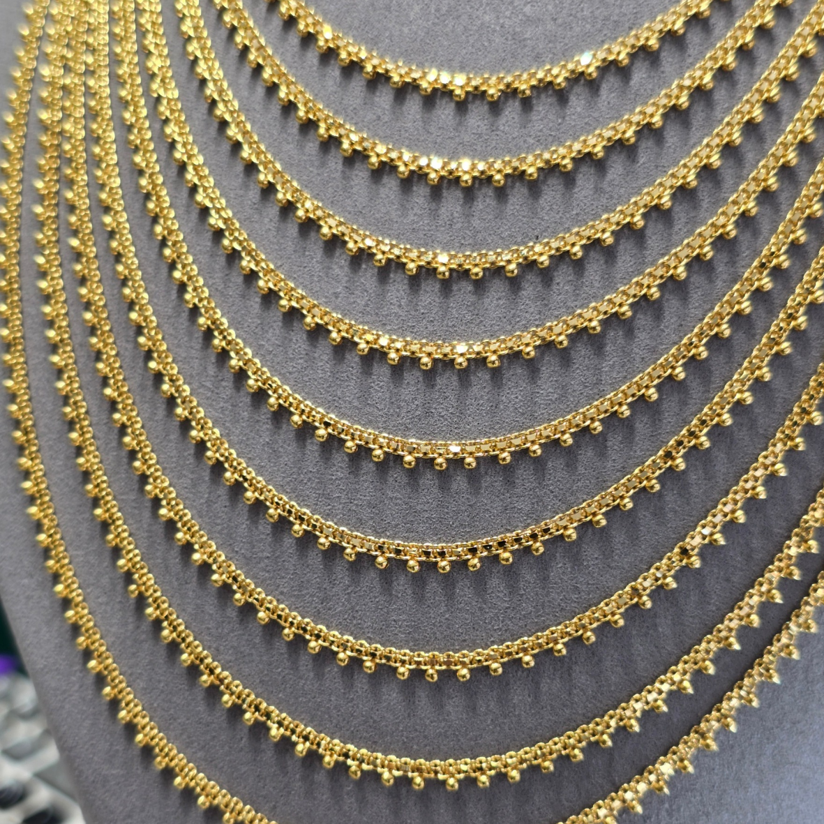 Şıklığı ve zarafetiyle dikkat çeken 14 Ayar Hint Madonna Akıtma 9 Sıra, her özel anınızda size eşlik edecek bir parça. Bu göz alıcı takı, zarif detayları ve özenle işlenmiş tasarımıyla öne çıkıyor. 81.65 gram ağırlığı ile hem gösterişli hem de kullanışlı bir aksesuar arayanlar için mükemmel bir seçenek.