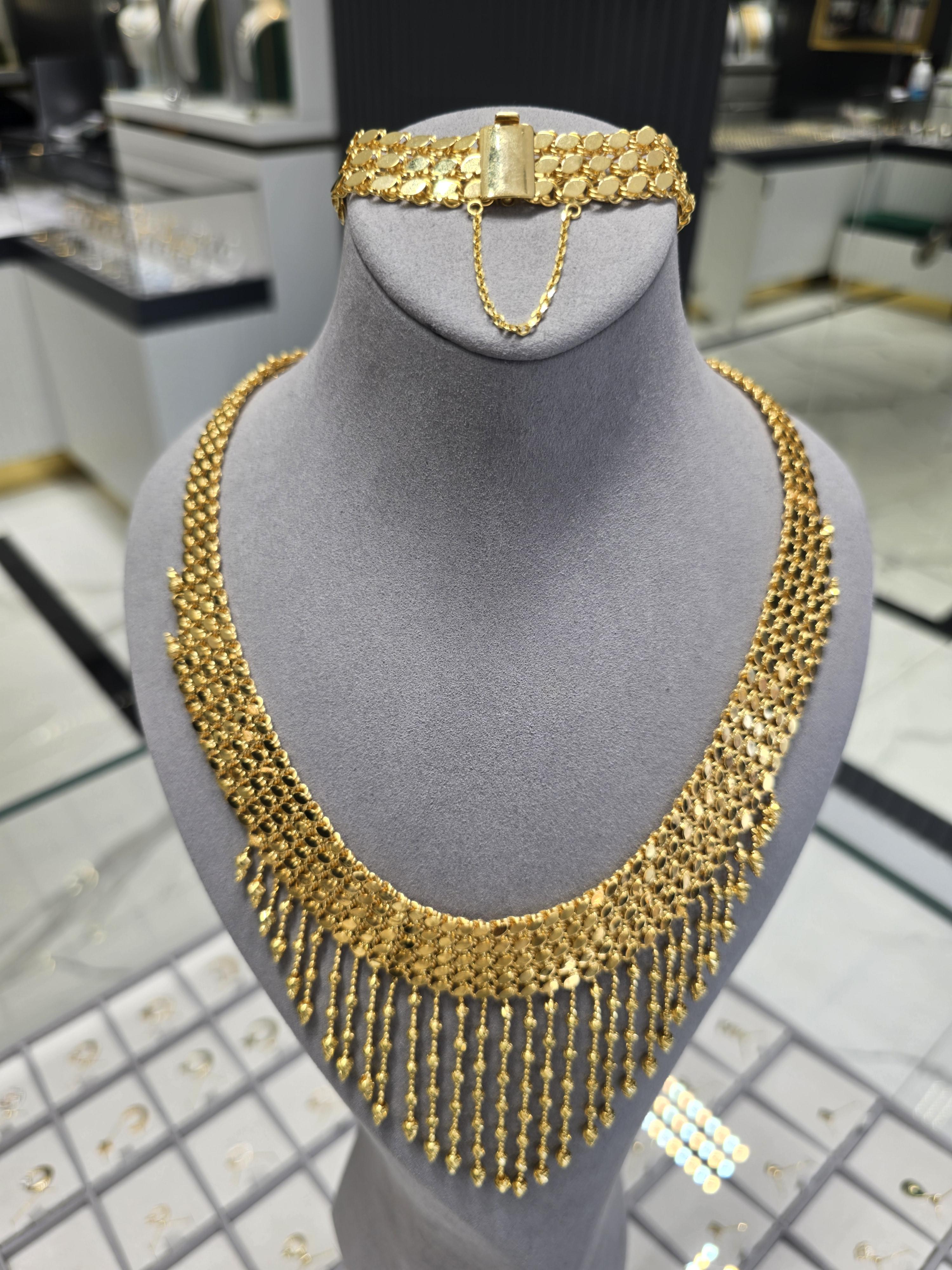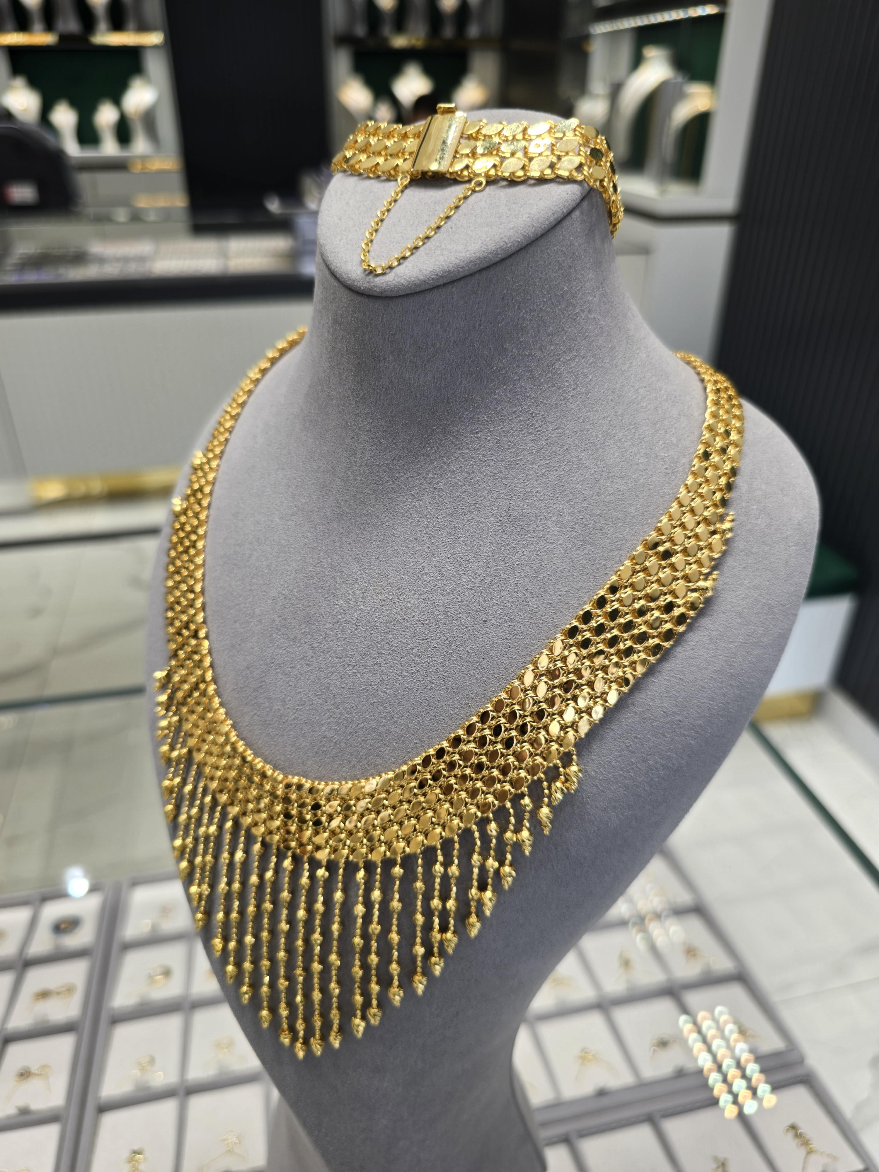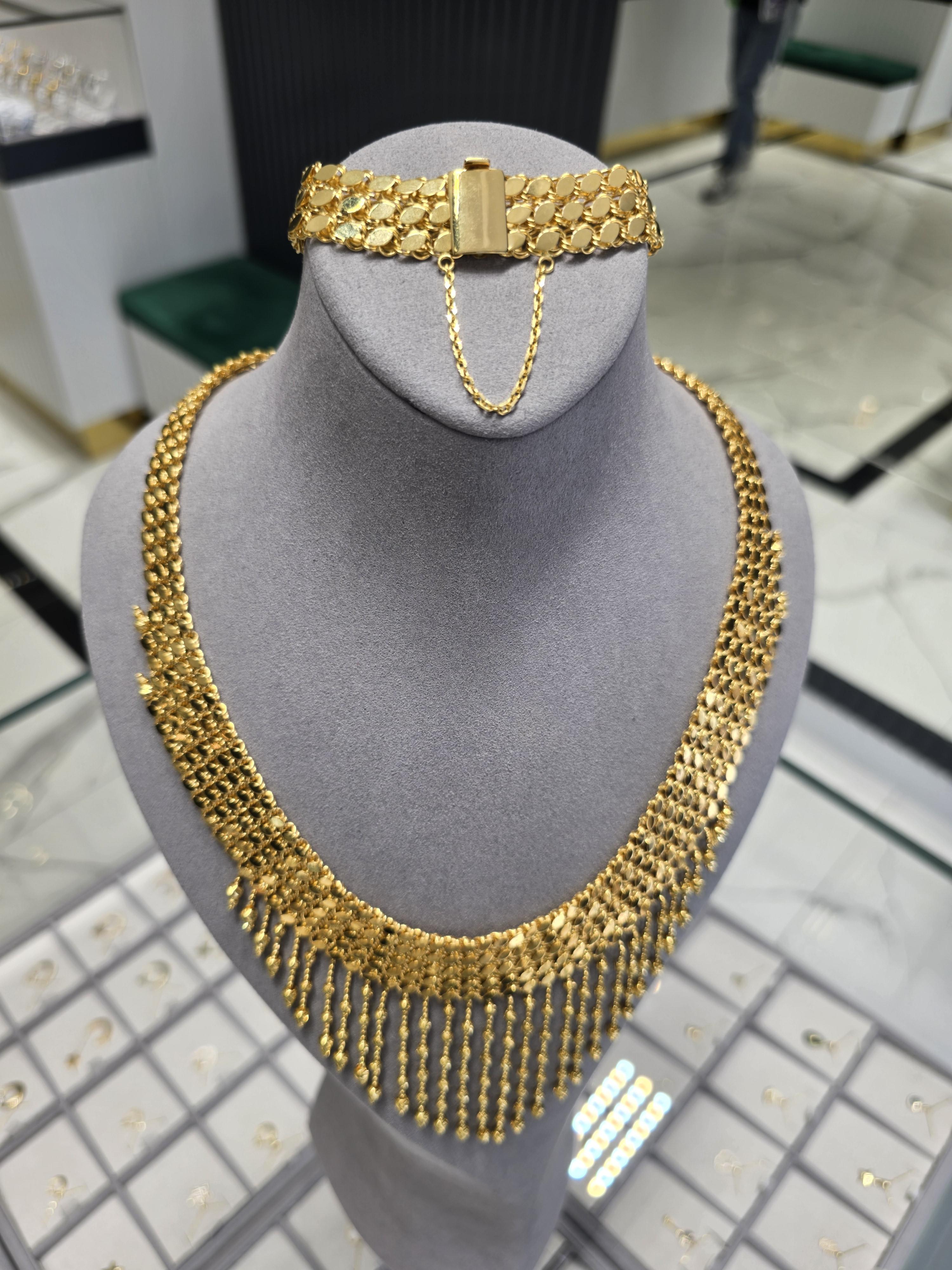 Şıklığın ve zarafetin en güzel örneklerinden biri olan 14 Ayar İtalyan Pullu Dorikalı Set, 69.29 gram ağırlığıyla göz alıcı bir seçenek sunuyor. Hem günlük hem de özel günlerde rahatlıkla kullanılabilecek bu değerli takı seti, kaliteli işçiliği ve şık tasarımıyla öne çıkmaktadır.