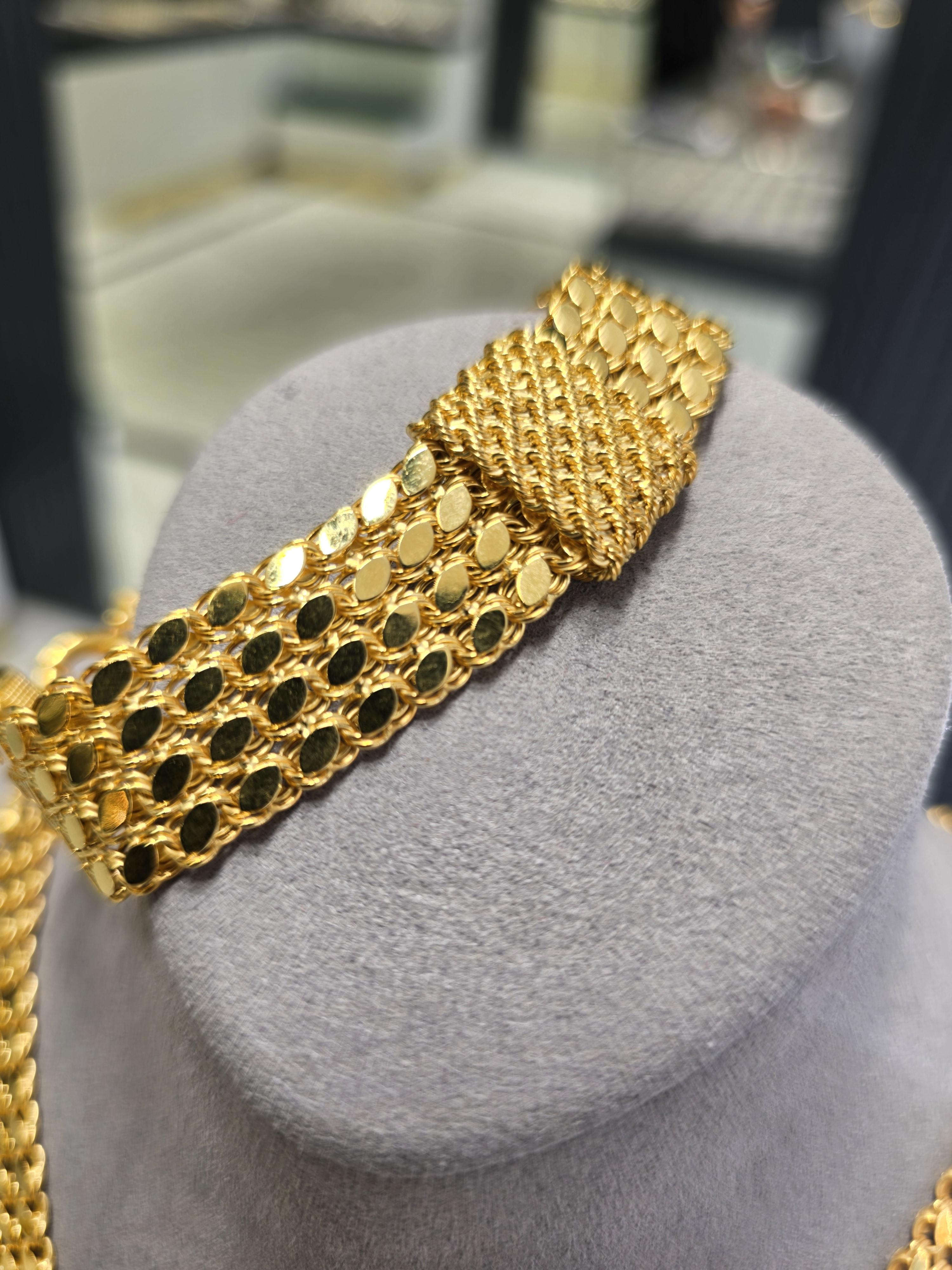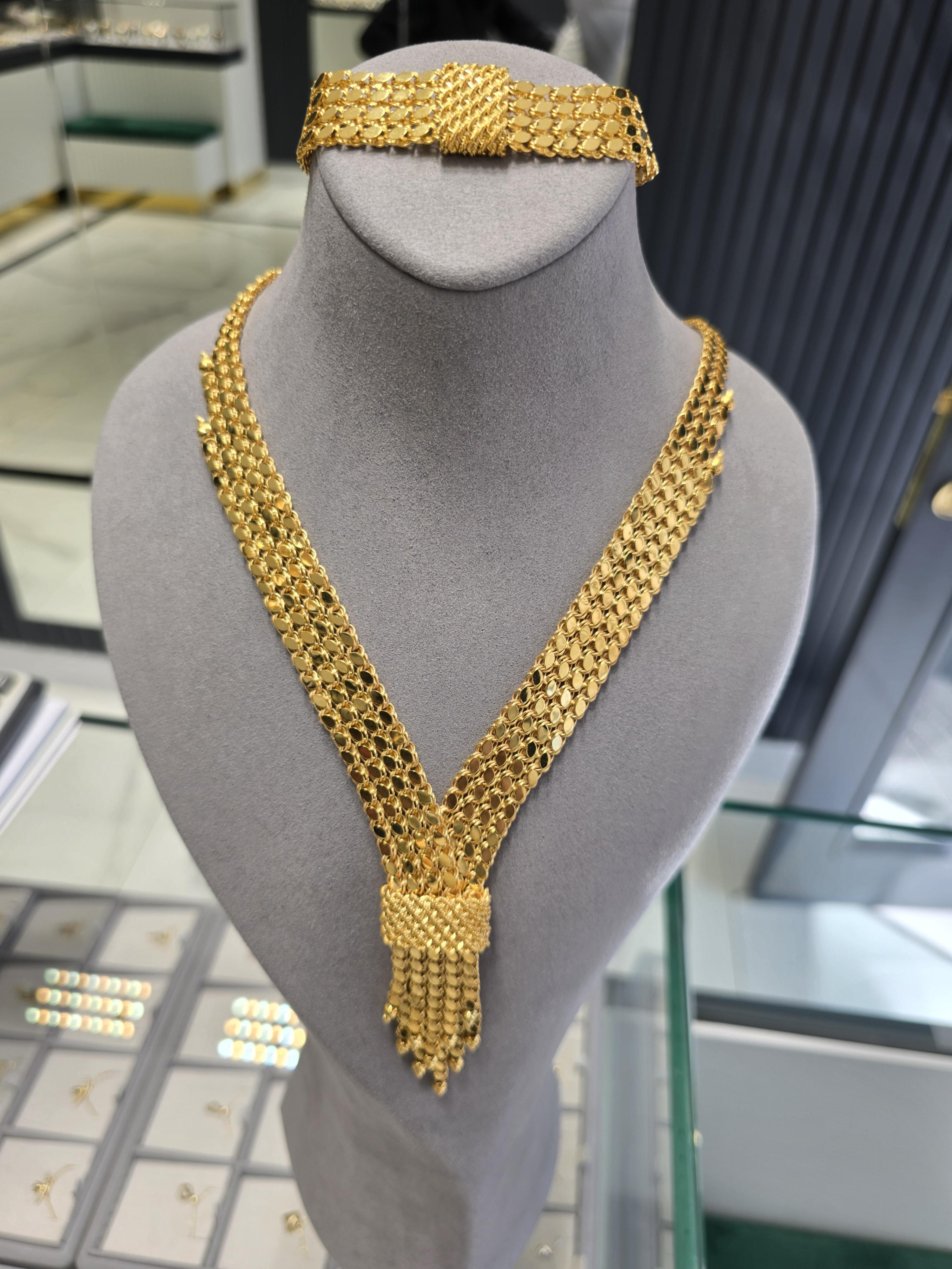14 Ayar İtalyan Pullu Set, zarif ve etkileyici tasarımı ile şıklığınıza şıklık katmak için hazırlandı. Bu özel set, sadece yüksek kaliteli malzemeler kullanılarak üretilmiş olup, 60.82 gram ağırlığıyla hem hafif hem de dayanıklıdır. Her biri özenle tasarlandı ve el işçiliği ile detaylandırıldı, böylece göze hitap eden bir estetik sunar.