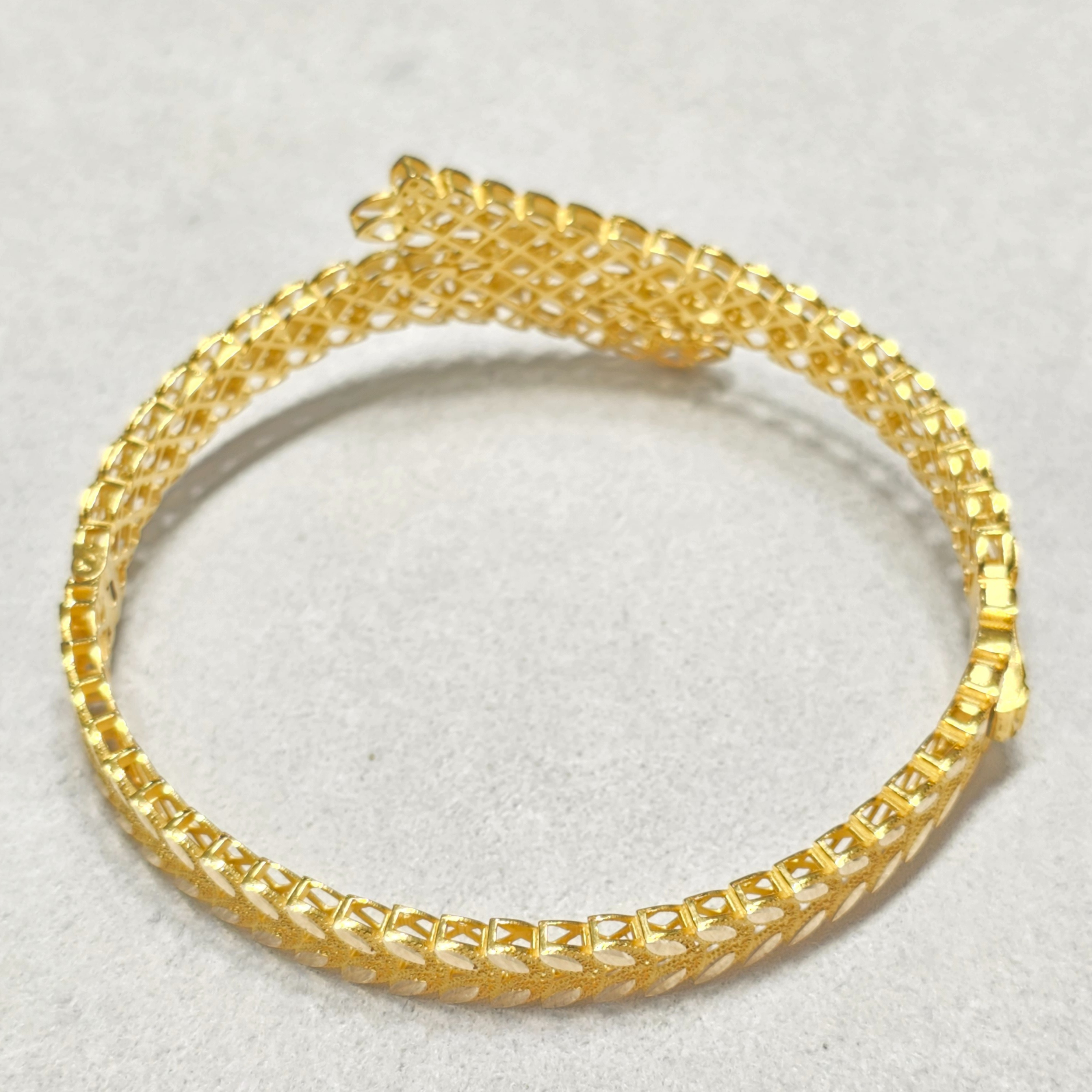 Bu kelepçe, %58,5 saf altından oluşan 14 ayar altın kullanılarak özenle tasarlanmıştır. 14 ayar altın, dayanıklılık ve parlaklık açısından ideal bir seçenek olup, uzun ömürlü bir kullanım sunar. Yüksek kaliteli malzemeleri sayesinde zamanla renk değiştirmez veya lekelenmez.