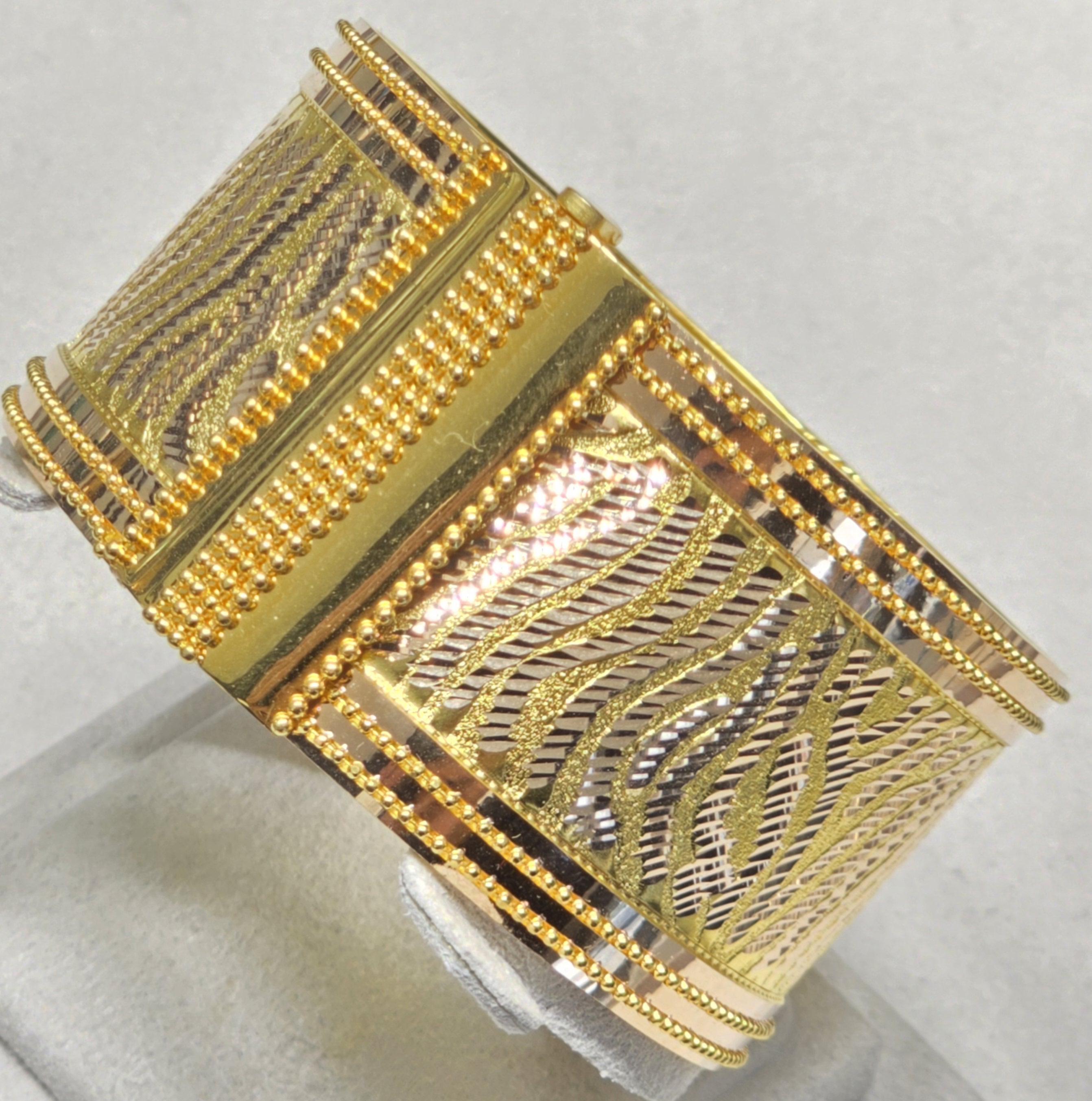 14 ayar Rize kelepçe, şık tasarımı ve kaliteli malzemesi ile takı koleksiyonunuzda yer alması gereken özel bir parçadır. 30.00 gram ağırlığı ile hem sağlam hem de hafif bir kullanım sunar. Zarif görünümü ile her durumda sizi zarif gösterir. Stil sahibi herkesin tercih edeceği bu bilezik, sevdiklerinize hediye edebileceğiniz en özel takılardan biridir.