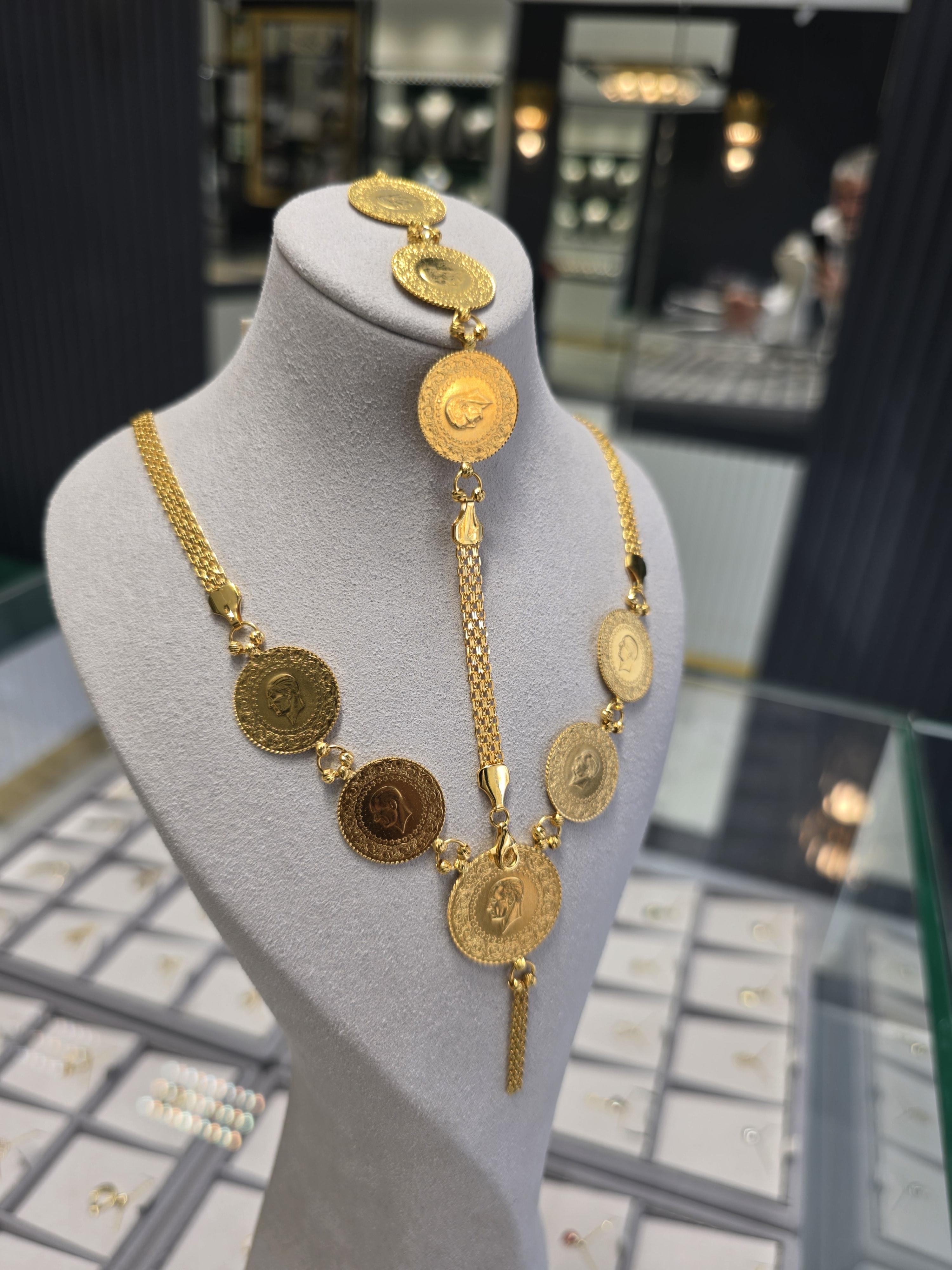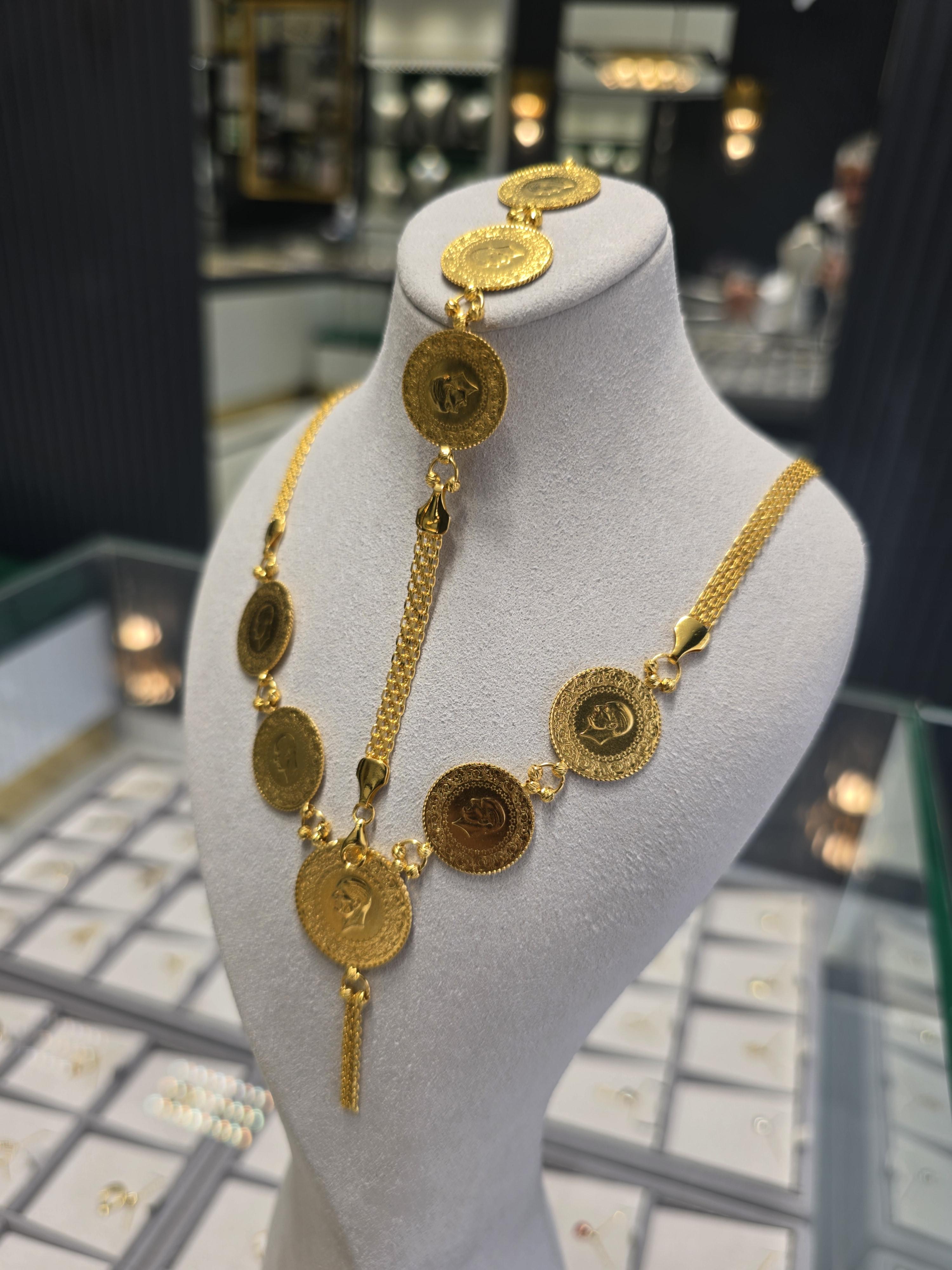 14 ayar altın gerdanlık ve bileklik setimiz, kaliteli işçiliği ve şık tasarımı ile her kadının takı koleksiyonunda bulunması gereken bir parça. Kendinizi veya sevdiklerinizi bu zarif takılarla şımartın ve her anınızı özel hale getirin!