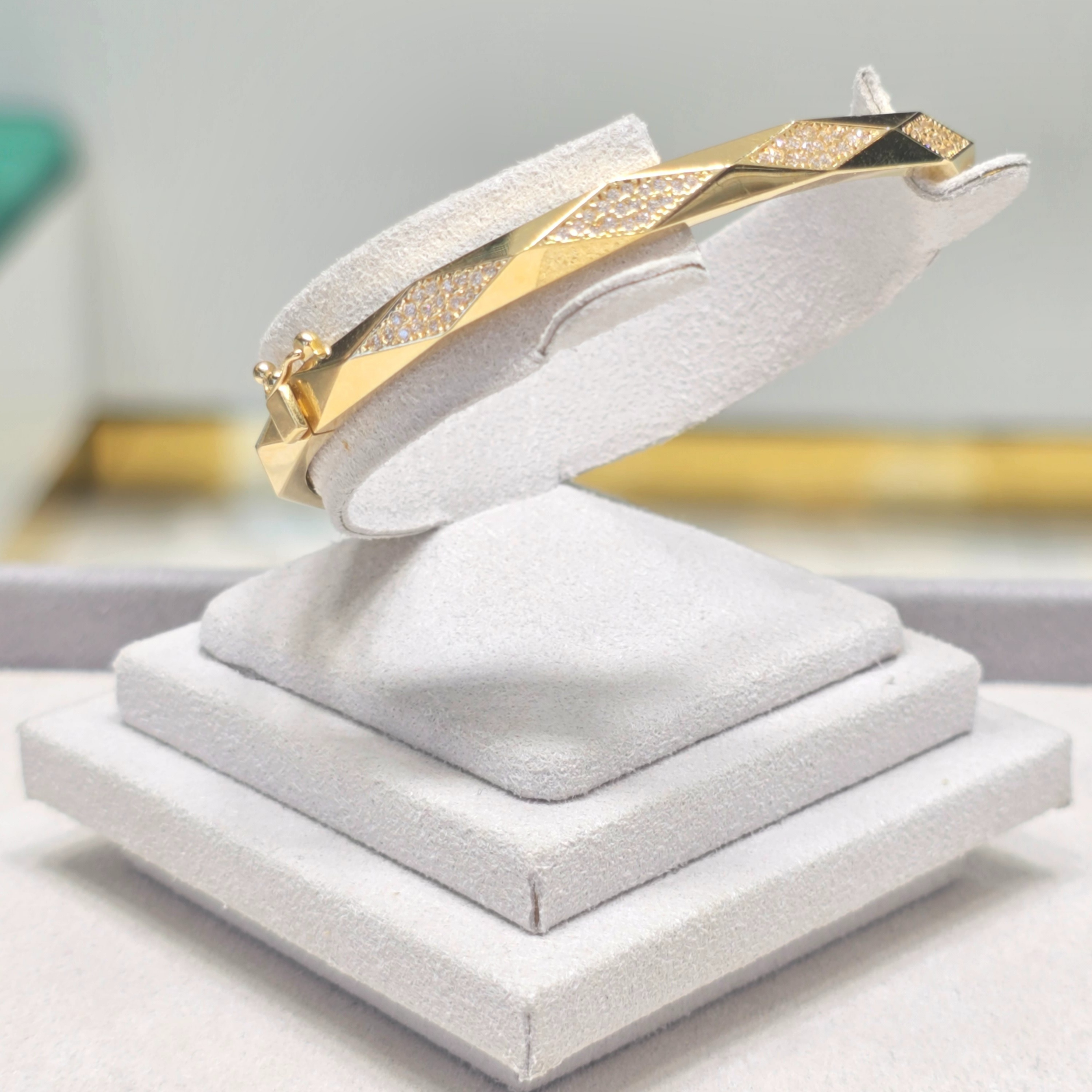 Bu spor kelepçe, 14 ayar altından üretilmiş olup, günlük kullanıma uygun dayanıklılığı ile dikkat çekiyor. İnce ve hafif tasarımı sayesinde bileğinizde yokmuş gibi hissedeceksiniz. Modern yaşamın getirdiği hareketliliği göz önünde bulundurarak tasarlanan bu ürün, spor ve şık görünümüyle her tarza uyum sağlar.