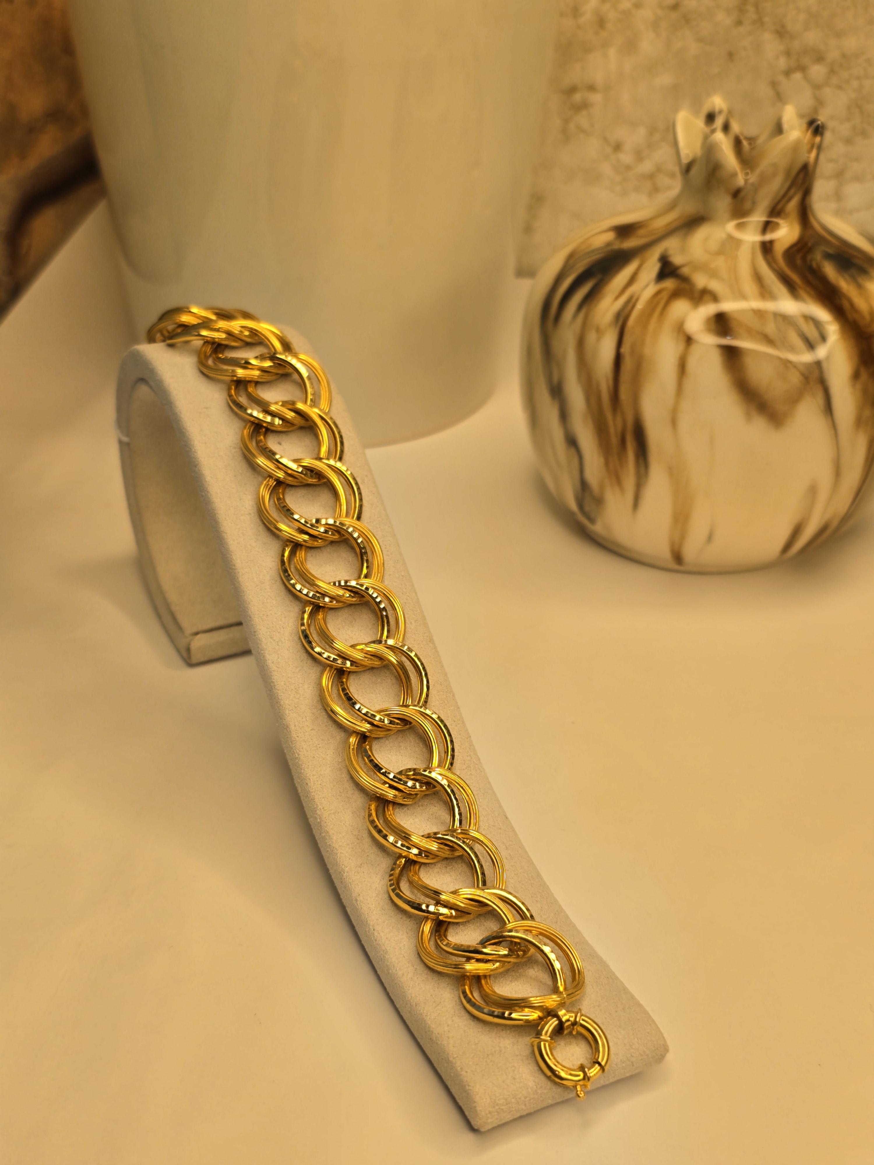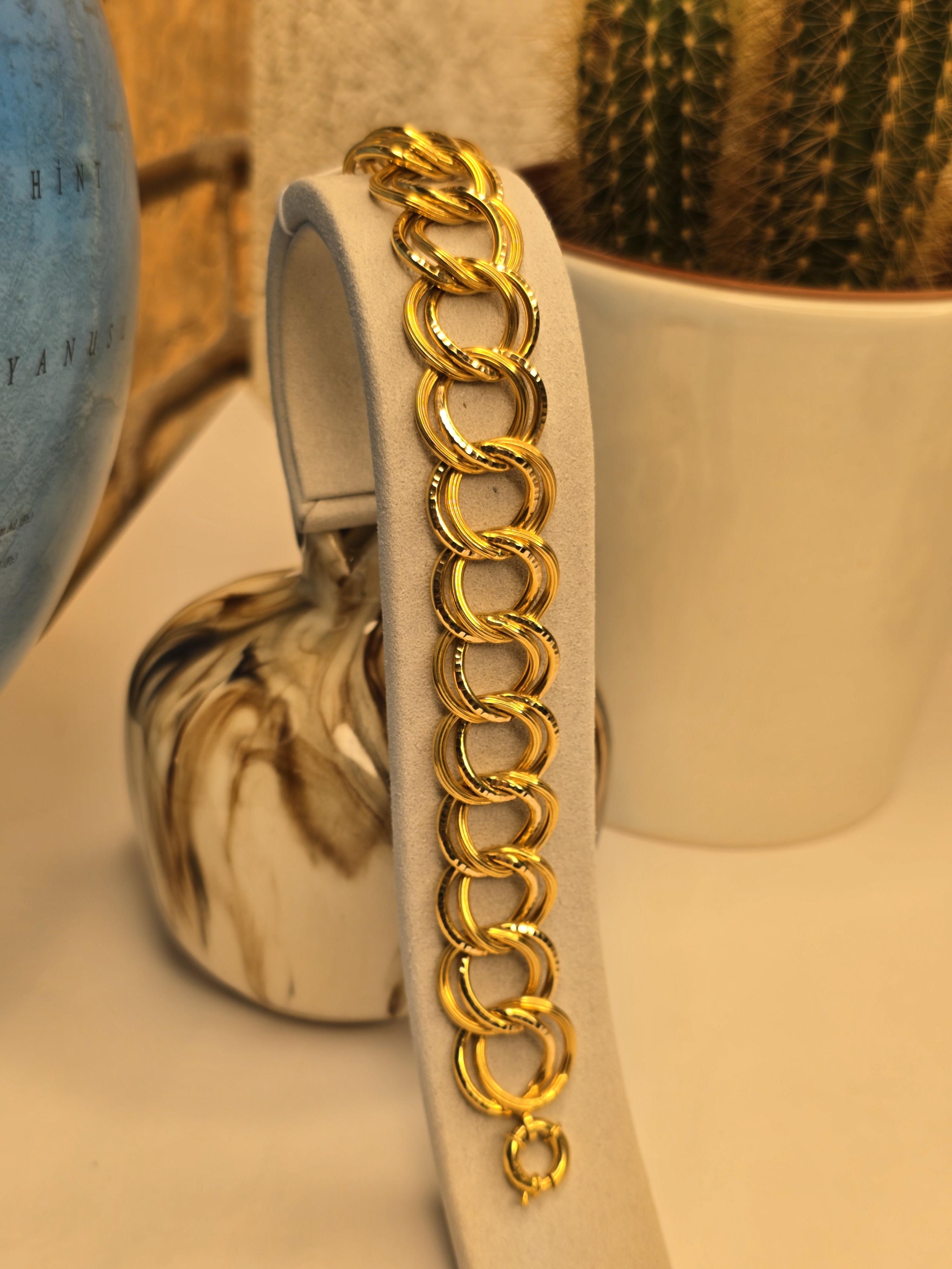 14 ayar altın, estetik güzelliği ve sağlam yapısıyla takı severler arasında yüksek bir itibara sahiptir. %58,3 saf altın ve diğer metal alaşımlarının birleşiminden oluşan bu bilezik, hem dayanıklılığı hem de benzersiz parlaklığı ile öne çıkar. Uzun vadede değerini koruyan bir yatırım olarak da düşünülebilir.