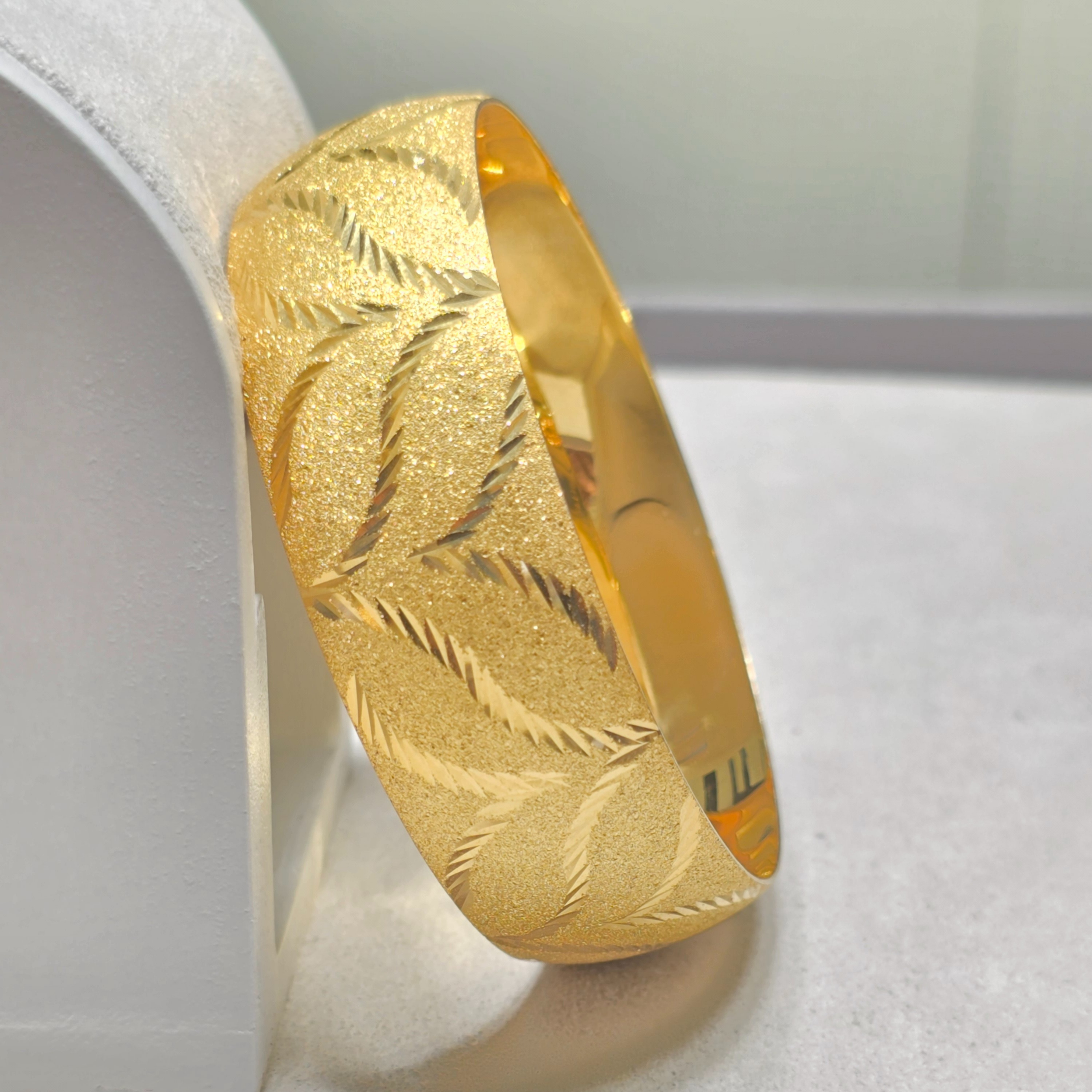 Bu bilezik, özenle işlenmiş klasik bir tarza sahiptir. 22 ayar altın kullanılarak üretilen bu bilezik, her yaştan kadın için uygun bir aksesuardır. Göz alıcı parlaklığı sayesinde her türlü kıyafetle mükemmel uyum sağlar, özel günlerde veya günlük yaşamda şıklığınızı tamamlar.