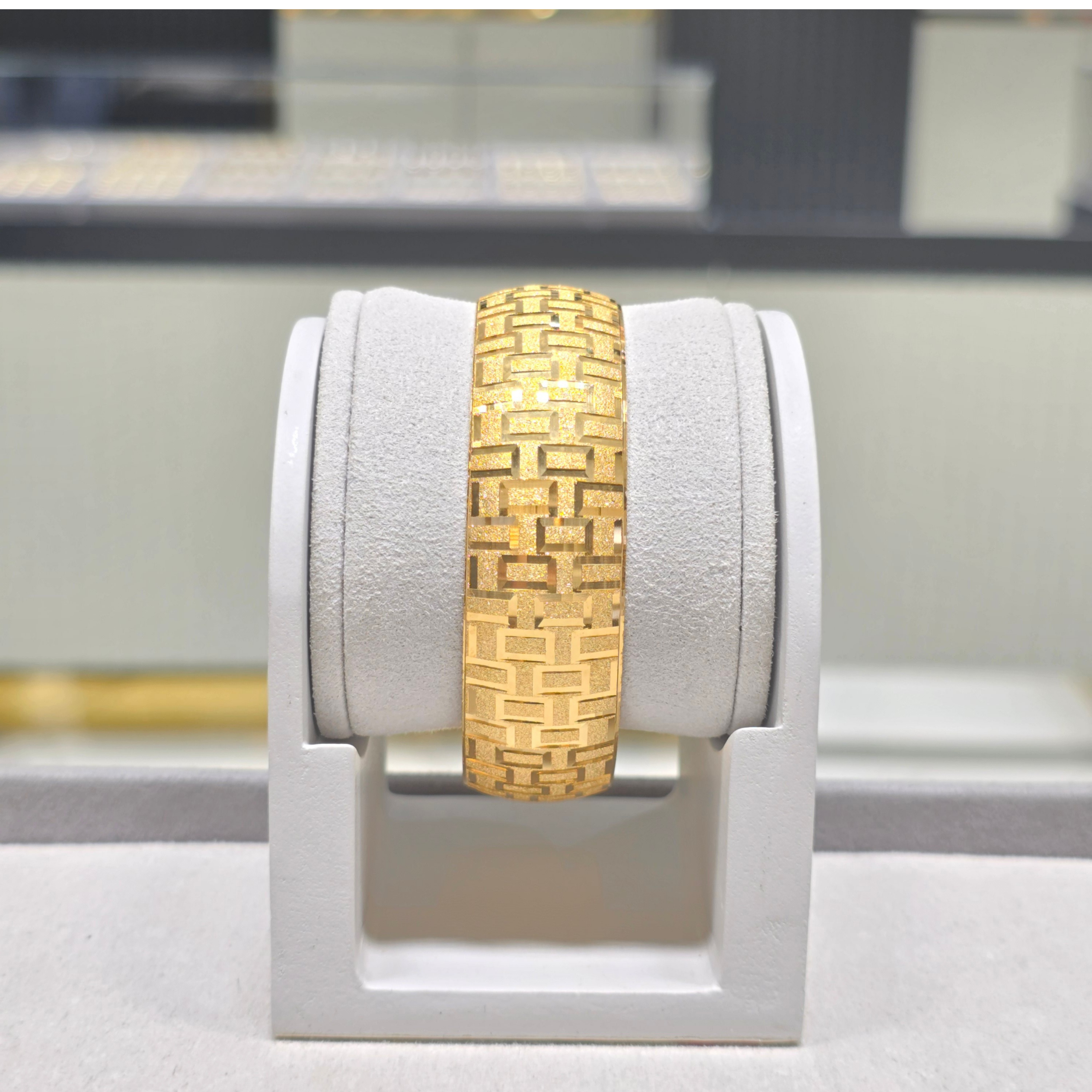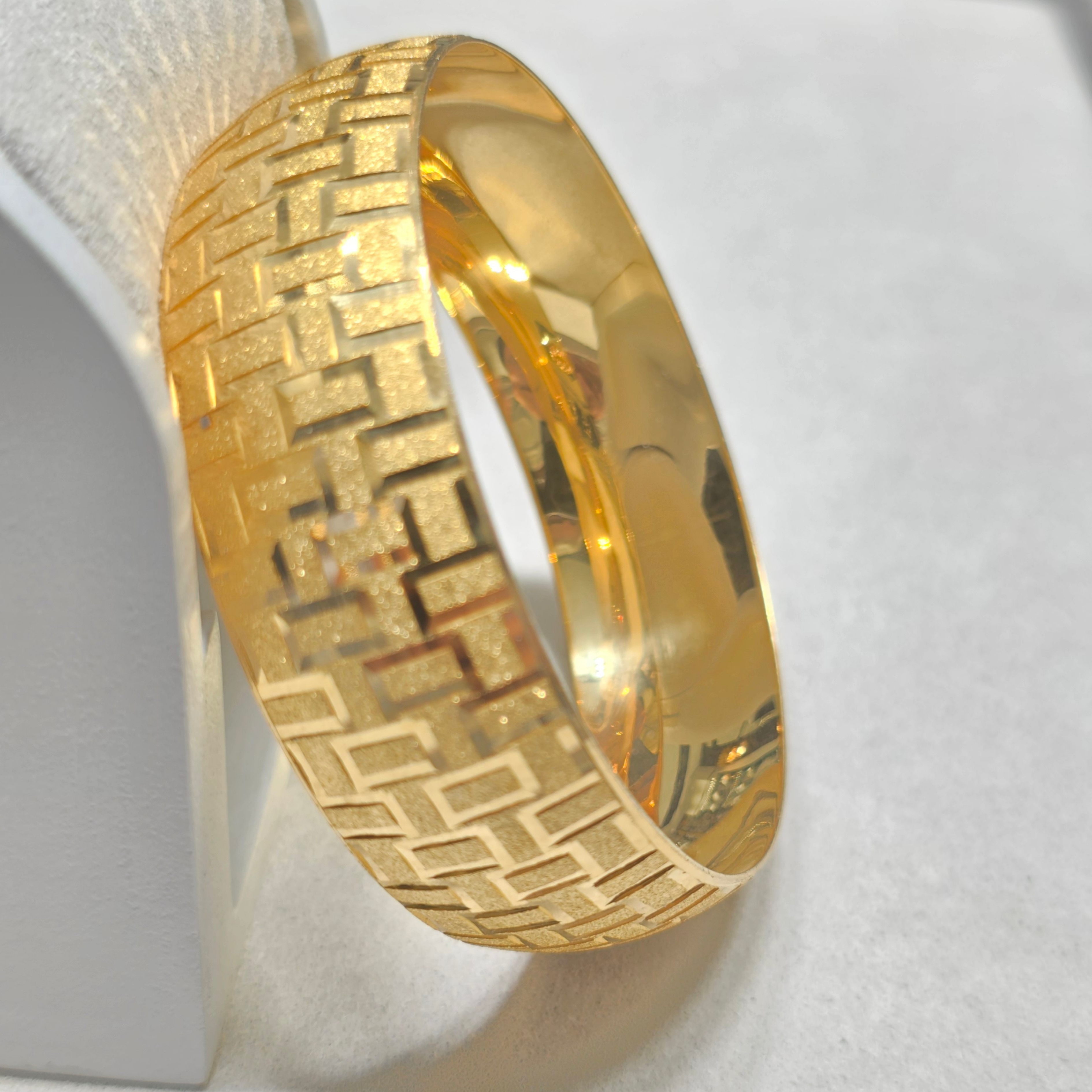 Bileziğimiz, zarif ve modern tasarımıyla dikkat çekiyor. Göz alıcı dokusu ve parlak yüzeyi ile her türlü kıyafetinizi tamamlayacak şekilde tasarlanmıştır. 22 ayar altın kullanılarak üretilmiş olması, bileziğin yüksek kalite ve dayanıklılığa sahip olduğunu gösterir. Bu bilezik, şıklığı ve zarafeti sevenler için ideal bir seçimdir.