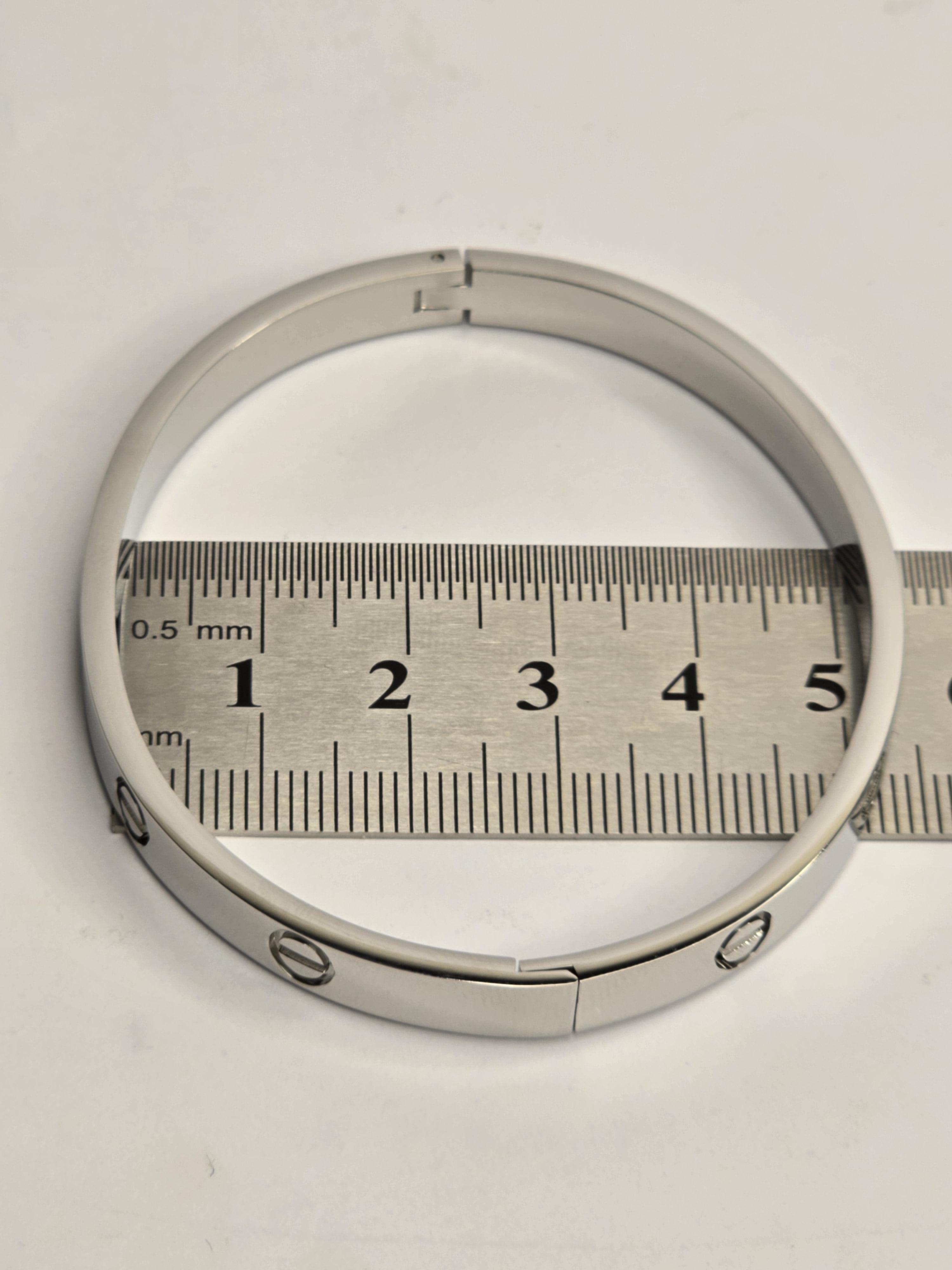 Bu çelik kelepçe, her durumda stilinizi tamamlayan şık bir aksesuar olarak öne çıkar. Gündelik hayatta, bir tişört ve pantolon kombini ile rahatlıkla kullanılabilirken, özel davetlerde ise şık bir elbiseyle muhteşem bir uyum sağlar. Cartier Çivi Desenli Çelik Kelepçe, hediye olarak da mükemmel bir tercih olup, sevdiklerinize uzun yıllar hatırlanacak bir anı bırakır.